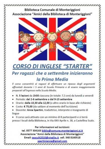 Informiamo che la Biblioteca Comunale di Monteriggioni organizza un corso di inglese rivolto agli studenti che frequenteranno la prima media nell’anno scolastico 2019-2020.