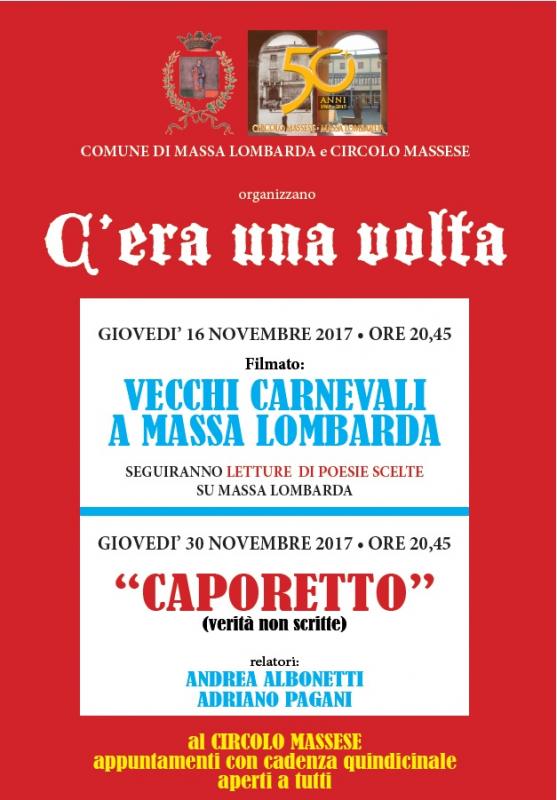 Continuano a Massa Lombarda gli appuntamenti del ciclo “C’era una volta”, nella sede del Circolo massese in piazza Matteotti 3.