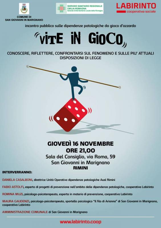 Per la Cooperativa Sociale “Labirinto” che lavora da 2 anni sulla prevenzione della dipendenza da gioco d’azzardo, interverranno dott. Fabio Astolfi, la Dott.ssa Romina Muzi e la Dott.ssa Maura Gaudenzi. Quest’ultima è psicologa-psicoterapeuta referente dello Sportello Psicologico “Il Filo di Arianna” attivo su San Giovanni in Marignano.