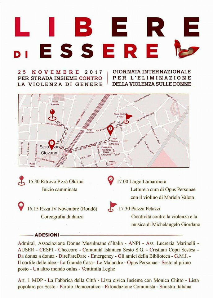 La maratona avrà inizio alle ore 15:30 in Piazza Oldrini, farà tappa alle 16:15 in Piazza IV Novembre (Sesto Rondò) per poi spostarsi in Largo Lamarmora alle ore 17:00.