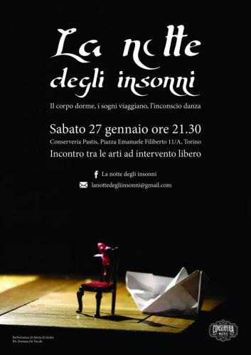 Evento itinerante giunto all’VIII appuntamento, La Notte degli Insonni è una serata di incontro tra arti ad intervento libero: Musica, poesia, teatro, pittura, video e performance sul tema "Sogni ed inconscio. Ciò che di giorno tace".