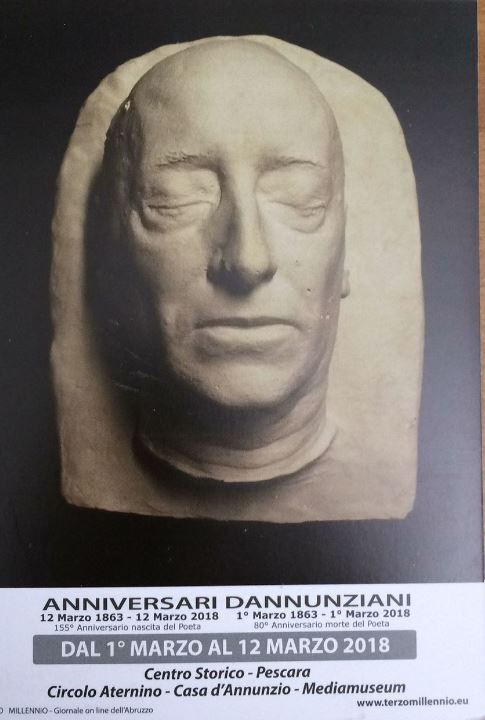 Tra i documenti esposti a Casa d'Annunzio a Pescara, la maschera di cera realizzata subito dopo la sua scomparsa avvenuta al Vittoriale il 1 marzo 1938, suscita sicuramente ammirazione e commozione. Inserito in un moderno allestimento en pendant con il calco delle mani, questo volto rasserena il profilo di un uomo che ha vissuto pienamente e intensamente la propria esistenza.