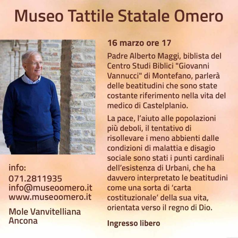 Sarà padre Alberto Maggi, biblista del Centro "Vannucci" di Montefano, il protagonista del prossimo evento al Museo Tattile Statale Omero, nel calendario di iniziative legato alla mostra "Il mondo ci chiama, Carlo Urbani e la sua missione".