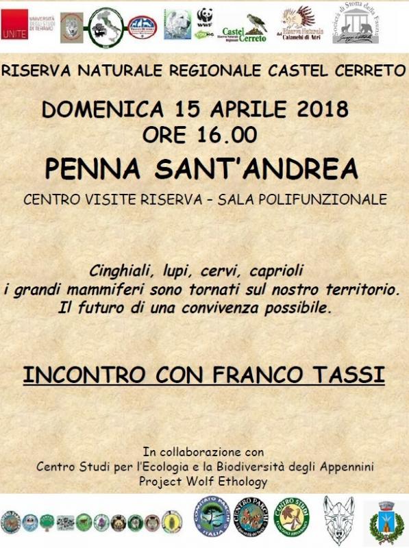 Franco Tassi, ideatore di un “modello di gestione” delle aree protette imitato ormai in tutto il mondo, interverrà sul tema “La rinascita della Vita nell’Appennino”. Il naturalista Giampaolo Pennacchioni, esperto di fauna selvatica e Direttore scientifico CSEBO (Centro Studi per l'Ecologia e la Biodiversità dell'Appennino), affronterà poi l’argomento “Il conflitto uomo-lupo”; seguirà l’illustrazione del pionieristico “Progetto Biodiversità” a cura di Enrico Migliaccio, biologo, entomologo e collaboratore del Centro Studi Ecologici Appenninici. Cesare Moroni, fotografo naturalista ed editore, racconterà le sue esperienze a contatto con la fauna, mentre Urania Vannucci e Niso Cini tratteranno dell’evoluzione dei rapporti dei giovani e del pubblico in genere con la fauna selvatica. Nell’occasione verranno presentate anche alcune interessanti pubblicazioni naturalistiche, non ancora note in Abruzzo, tra cui gli ultimi lavori di Franco Tassi “Lupus in fabula”, “Alberi Sacri”, “Misteriosa Lince”.
