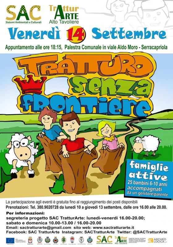 SAC TRATTURARTE – ALTO TAVOLIERE: VENERDI’ 14 SETTEMBRE L’EVENTO PER FAMIGLIE “TRATTURO SENZA FRONTIERE” A SERRACAPRIOLA