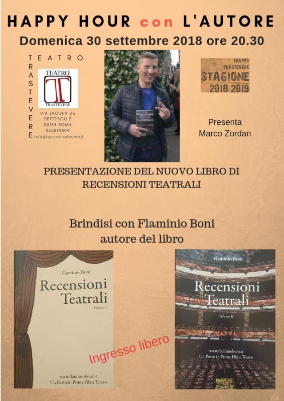 Domenica 30 settembre alle ore 20.30 Flaminio Boni presenterà il libro Recensioni Teatrali – Vol. II al Teatro Trastevere all’interno di un evento creato ad hoc.