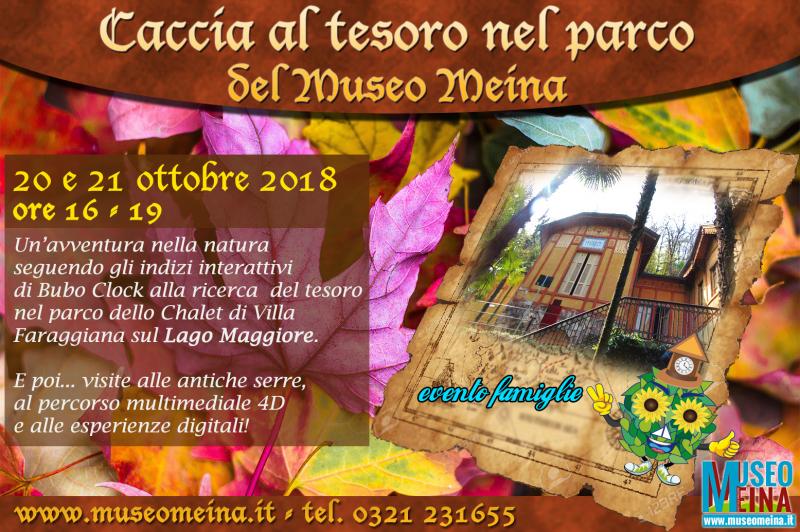 Alla ricerca del tesoro di Bubo Clock nell'incantevole parco dello chalet di Villa Faraggiana sul Lago Maggiore.