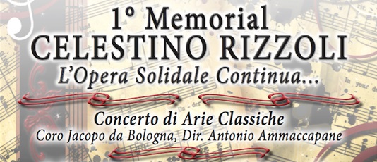 Quest'anno l'evento natalizio di Bimbo Tu Onlus sarà dedicato ad un personaggio speciale, Celestino Rizzoli, "padre" di Bcc Felsinea e uomo dal grande cuore, scomparso il 17 novembre 2017. Vista la preziosa dedizione nei confronti dell'Associazione Bimbo Tu Onlus, per commemorare Celestino Rizzoli, SABATO 24 NOVEMBRE 2018 alle ore 21:00 si terrà un concerto di arie classiche interpretate dal coro Jacopo da Bologna diretto da Antonio Ammaccapane.