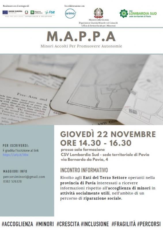 Nell’ambito del progetto M.A.P.P.A. Minori Accolti per Promuovere Autonomie, la cooperativa sociale Arimo, in collaborazione con USSM e CSV Lombardia SUD, ha organizzato tre incontri informativi per presentare agli Enti del Terzo Settore la possibilità di accogliere minori in attività socialmente utili in un percorso di riparazione sociale.