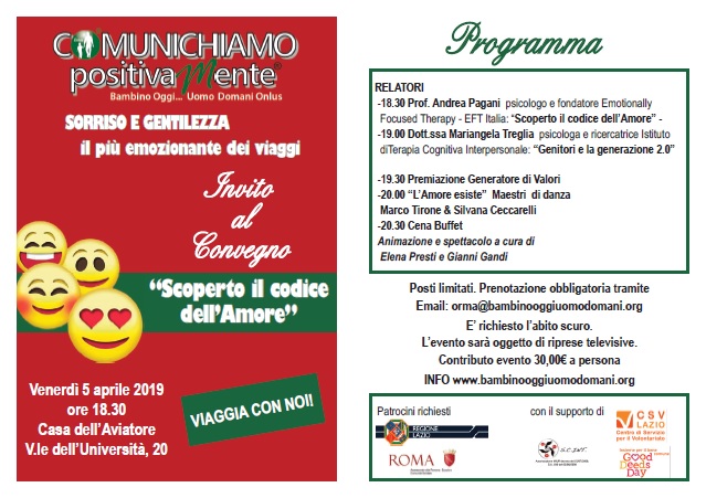 un evento con Serata di Gala da trascorrere con il sorriso e la gentilezza alla "Scoperta del codice dell'amore" è il più emozionante dei viaggi!