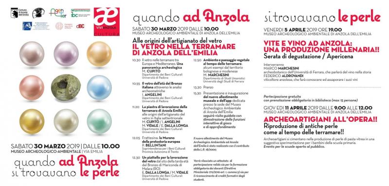Sabato 30 Marzo 2019, dalle ore 10.00, presso il Museo Archeologico Ambientale di Anzola dell’Emilia, in occasione dell’inaugurazione del nuovo allestimento del museo si svolgerà “Alle origini dell’artigianato del vetro: il vetro nella terramara di Anzola dell’Emilia”.