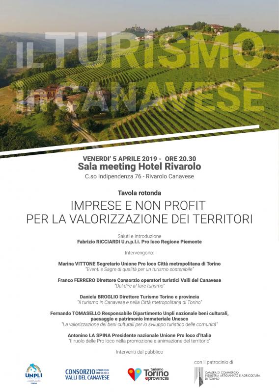 Il Convegno: “Imprese e non profit per la valorizzazione dei territori” avrà luogo VENERDI’ 5 APRILE 2019, alle ore 20.30, presso la Sala meeting dell’Hotel Rivarolo In Rivarolo Canavese.