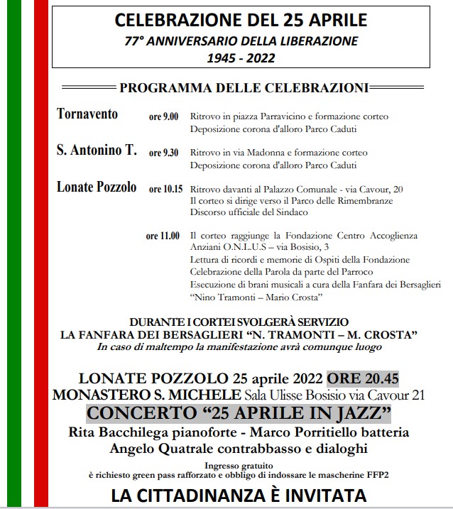 Diniego di responsabilià: le notizie riportate in questa pagina sono state fornite da Enti Pubblici e Privati e, organizzazione eventi e sagre, fiere. Suggeriamo di verificare date, orari e programmi che potrebbero variare, contattando le organizzazioni o visitando il sito ufficiale dell'evento.