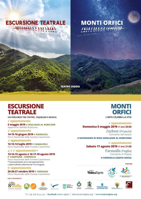 La Rassegna Monti Orfici va ad arricchire quest’anno il progetto “Escursione Teatrale - Laboratorio Interdisciplinare tra Teatro, Taijiquan e Musica”, giunto alla sua VII Edizione.