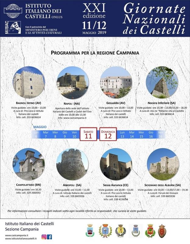 A Campolattaro alle ore 10,30 ci sarà la visita guidata al castello; a seguire, conversazione dello storico Francesco Bove sui castelli del Sannio. Visite guidate anche sabato pomeriggio e domenica 12.