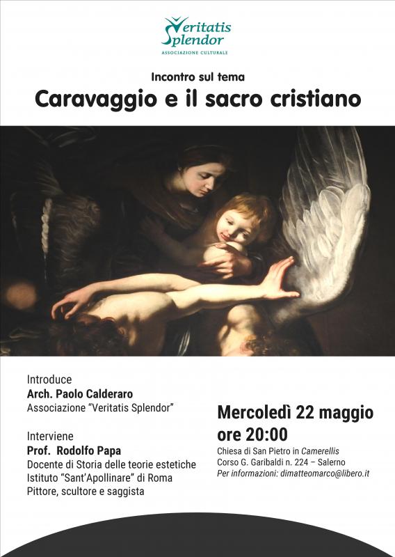 L’associazione culturale “Veritatis Splendor” ha organizzato a Salerno per mercoledì 22 maggio, alle ore 20, nella Chiesa di San Pietro in Camerellis, in Corso Garibaldi n. 224, una conferenza sul tema: “Caravaggio e il sacro cristiano”. L’evento si inserisce nell’ambito delle manifestazioni culturali che accompagnano la mostra “Caravaggio Napoli”, allestita presso il Museo di Capodimonte. Nel corso della serata interverrà il Prof. Rodolfo Papa, Docente di Storia delle teorie estetiche presso l’Istituto “Sant’Apollinare” di Roma e Presidente della “Accademia Urbana delle Arti”. Pittore, scultore e saggista, Rodolfo Papa si soffermerà sui modelli antichi della pittura di Caravaggio. A introdurre l’incontro sarà l’architetto Paolo Calderaro, consigliere dell’associazione promotrice.