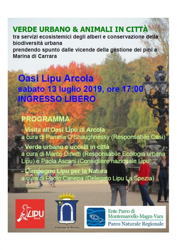 “Verde urbano & animali in città” che si svolgerà il prossimo sabato 13 luglio alle ore 17:00 all’Oasi Lipu di Arcola (SP).