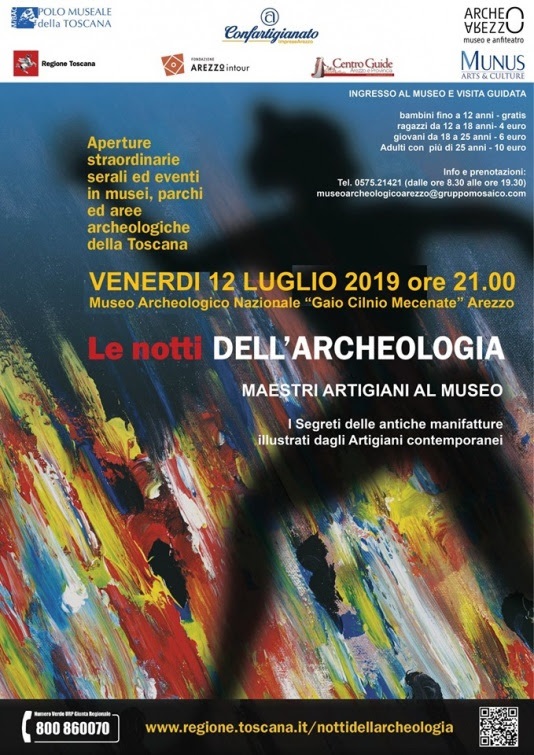 Apertura straordinaria nella serata di venerdì 12 Luglio per la visita al Museo Archeologico di Arezzo. Attraverso le visite guidate del Centro Guide di Arezzo gli artigiani di Confartigianato illustreranno ai visitatori i segreti delle antiche manifatture.