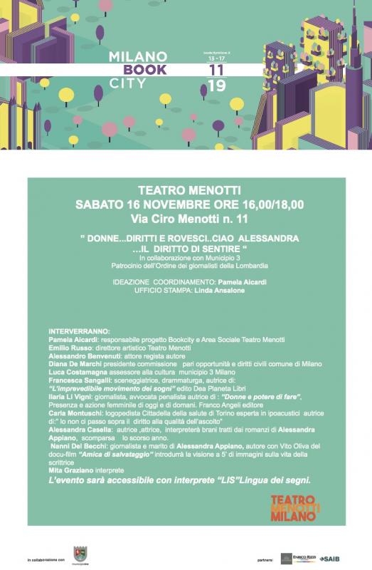 Seguirà un omaggio ad Alessandra Appiano, amica del Menotti che nella prima edizione di Bookcity aveva presentato in teatro il suo ultimo libro: “Ti meriti un amore”.