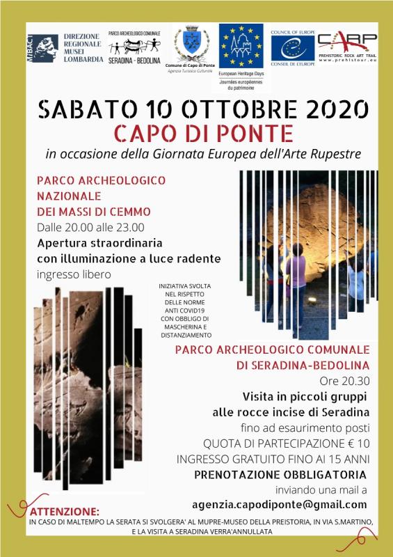 In occasione della Giornata Europea dell'Arte Rupestre non perdete l'opportunità di visitare due dei Parchi Archeologici di CAPO DI PONTE (BS) in notturna.