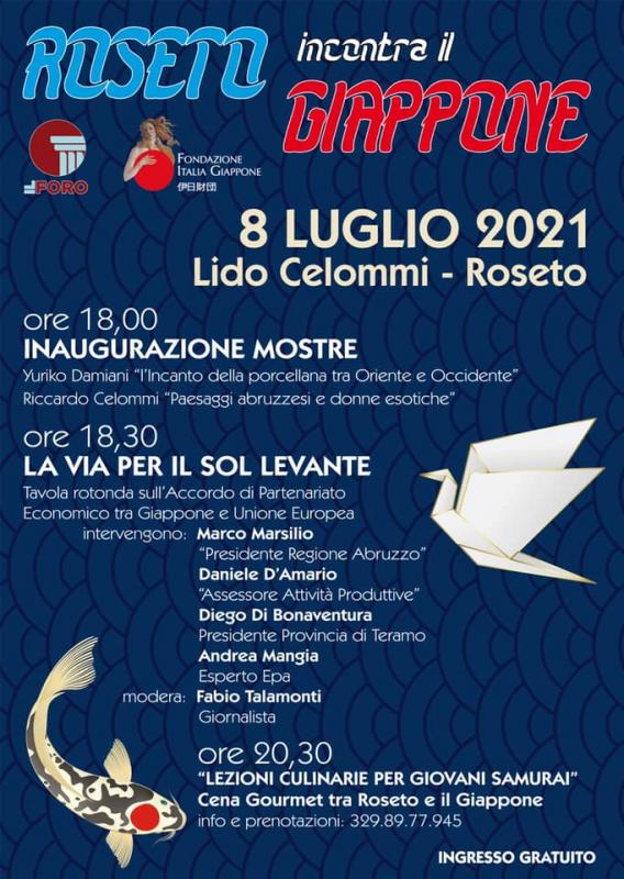 Presso il Lido Celommi di Roseto degli Abruzzi in provincia di Teramo si svolge nei giorni 08 e 09 Luglio 2021 l'evento Roseto incontra il Giappone.
