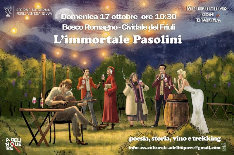 DAL 17 OTTOBRE 4 APPUNTAMENTI PER LA SECONDA TRANCHE DI "IL SENTIERO PER IL PARADISO INIZIA DALL'INFERNO...APERITIVO CON L'ARTE SOTTO LE STELLE" TRA PORDENONE, TRIESTE, GORIZIA E UDINE SI PARTE CON L'IMMORTALE PASOLINI A BOSCO ROMAGNO DI CIVIDALE DEL FRIULI