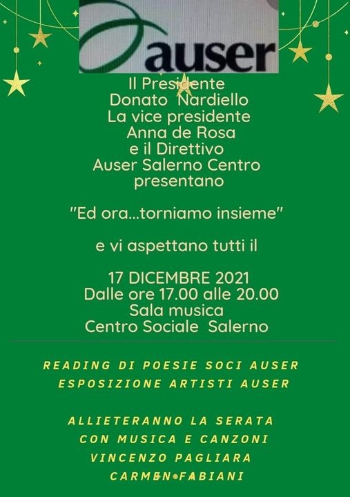 AUSER SALERNO CENTRO per ripresa attività, reading di poesie, musica e altro.