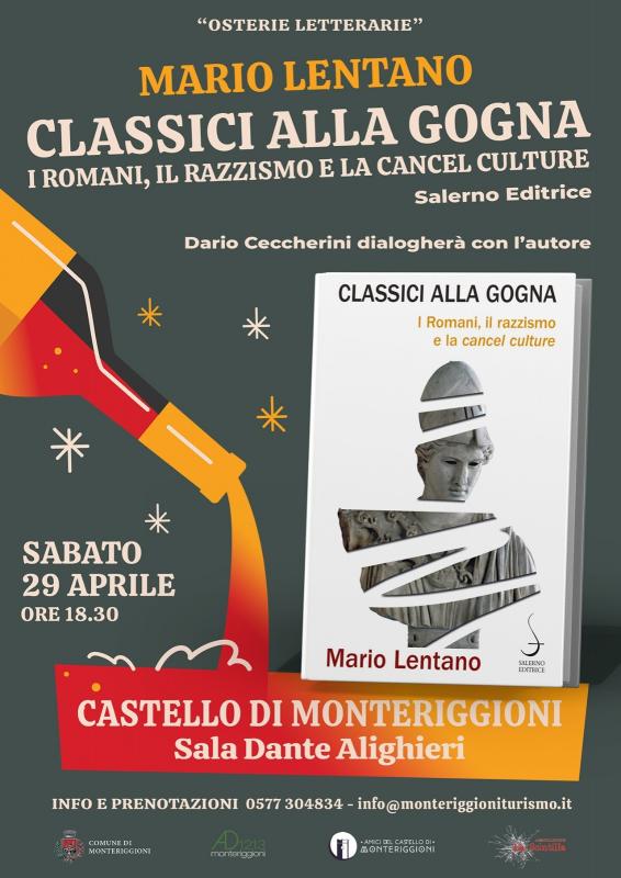 Sabato 29 aprile alle ore 18.30 presso la Sala Dante Alighieri (Castello di Monteriggioni), si terrà l'Osteria Letteraria di Mario Lentano “Classici alla gogna. I romani, il razzismo e la cancel culture".