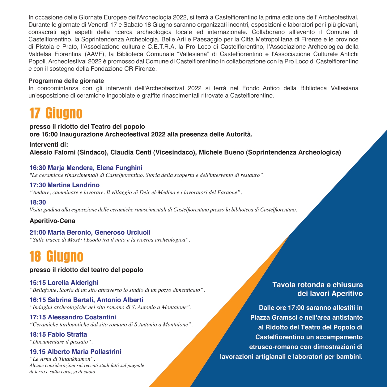 In occasione delle Giornate Europee dell’Archeologia 2022, si terrà a Castelfiorentino la prima edizione dell'Archeo Festival.