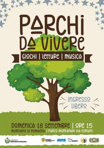 Parchi da Vivere ha un format semplice ma ricco di spunti per tutti. In questa prima edizione sono presenti un laboratorio manuale “Morsi di fine estate” genitori-figli curato dall’associazione “Il Giardino delle Idee”; ci sarà la possibilità per tutti i bambini di ottenere “la patente del parco” guidando auto a pedali in percorsi tra alberi e altalene realizzati dall’associazione Nuova SAM; l’associazione La Torre propone giochi di società e da tavolo per tutte le età; le Mamme di Morciano organizzano letture sulle coperte per i più piccoli e, finalmente dopo 3 anni, ripropongono il “Mercatino dei Bambini”.