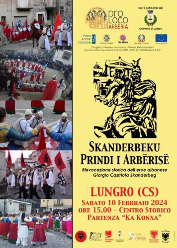 “Skanderbeku Prindi i Arbërisë” è il nome della manifestazione che si svolgerà sabato 10 febbraio 2024 alle ore 15:00 a Lungro (CS) organizzata dalla Proloco Arbëria, rievocazione delle gesta dell’eroe nazionale albanese Giorgio Castriota Skanderbeg giunta alla sesta edizione.