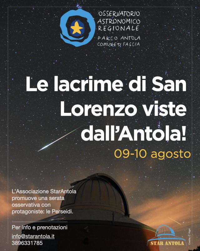 Il 9 e 10 Agosto l'Associazione StarAntola Ets promuove un evento speciale con protagonista le Perseidi (Stelle cadenti)