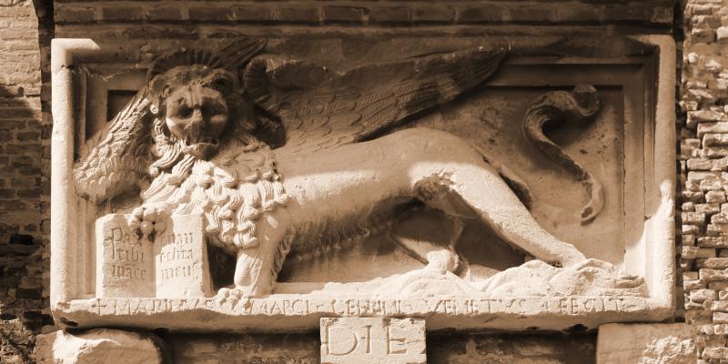 Il fortilizio fu eretto sulle antiche rive del fiume Montone tra il sesto e il settimo decennio del XV secolo a opera della Serenissima Repubblica di Venezia, dal cui simbolo (il Leone di San Marco) la struttura trasse con tutta probabilità il proprio nome.