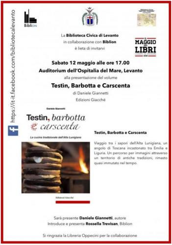 La Biblioteca Civica Matteo Vinzoni di Levanto Presenta un nuovo libro inserito nella manifestazione Nazionale "IL MAGGIO DEI LIBRI"