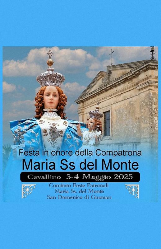 La devozione dei Cavallinesi per la Madonna del Monte si è mantenuta forte nel corso dei secoli, alimentata da un profondo amore della gente del luogo verso quella tenera immagine, simbolo della religiosità del paese. Ogni anno, nella prima domenica di maggio, si svolge la festa della Vergine, con momenti davvero toccanti come, ad esempio, quando sul sagrato della Chiesa madre, tutti i giovani intonano l' inno della Madonna del Monte dinanzi alla statua della Vergine, che durante l'anno, è custodita nel castello dagli eredi della famiglia Castromediano e dal quale viene prelevata durante i festeggiamenti. Dopo l'esecuzione dell'inno si snoda la processione che va dalla cappella cimiteriale della Madonna alla parrocchia dove si intona nuovamente l'inno e si celebra la Santa Messa per poi rientrare in paese e assistere ai fuochi pirotecnici.