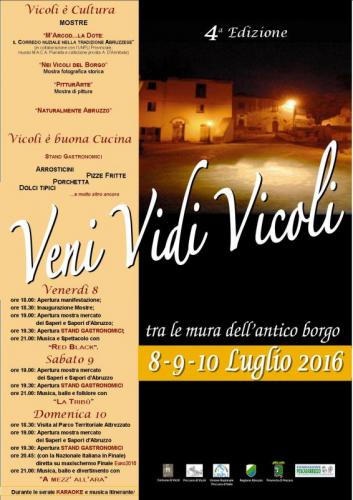 Tre giorni di cultura, folklore, tradizioni e eno-gastronomia, nel incantato borgo medievale di Vicoli Vecchia. Strade e piazzette rivivranno di musica e balli, tra mercatini dell’artigianato e dei prodotti tipici locali, completamente permeato dall’atmosfera “rurale” che il carattere isolato del borgo permette bene di ricostruire. Si potranno, quindi, gustare tutti i frutti dell'area come arrosticini, pizze fritte, olio, formaggi, dolci e molte altre prelibatezze e curiosità… il tutto accompagnato da balli e canti della tradizione folkloristica abruzzese. Grande spazio alla cultura con mostre in ambienti unici, come "M'Arcord...la Dote: il corredo nuziale nella tradizione abruzzese" che sarà allestita all'interno del palazzo baronale "Alfonsi".