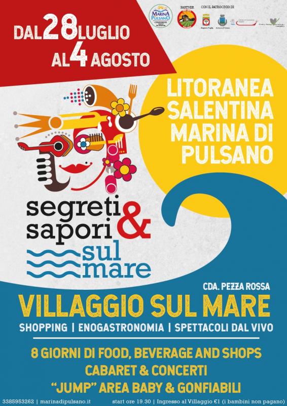 Per questo il “villaggio sul mare” di Segreti & Sapori 2019 sarà ubicato direttamente sulla litoranea in località Marina di Pulsano, in Viale dei Micenei-Contrada Pezza Rossa, su una grande area attrezzata – 12.000 metri quadrati – dotata di ampi parcheggi, al centro di numerose infrastrutture turistiche.