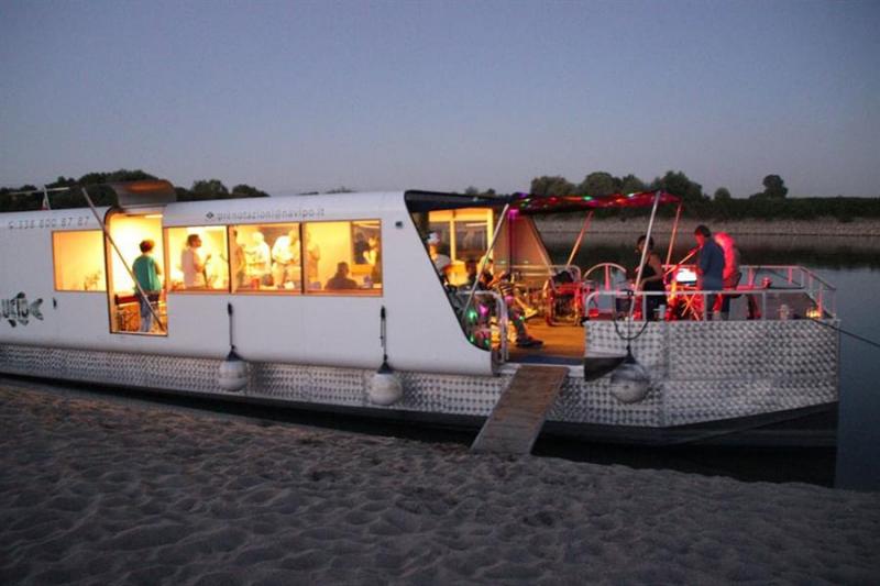 La serata sarà caratterizzata dalla navigazione sotto le stelle, dalla cena a bordo servita al tavolo nella parte riparata del battello e sarà accompagnata dalle storie di jazz