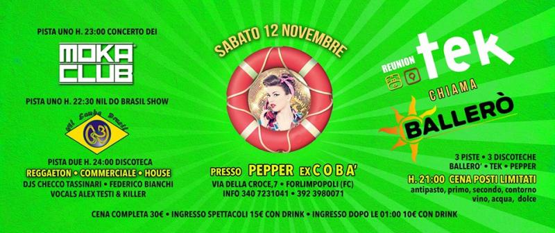 Tek chiama Ballero', sabato 12 novembre 2016 cena, concerti e tanta musica al Pepper (ex Coba') di Forlimpopoli in via della croce, 7 (FC).