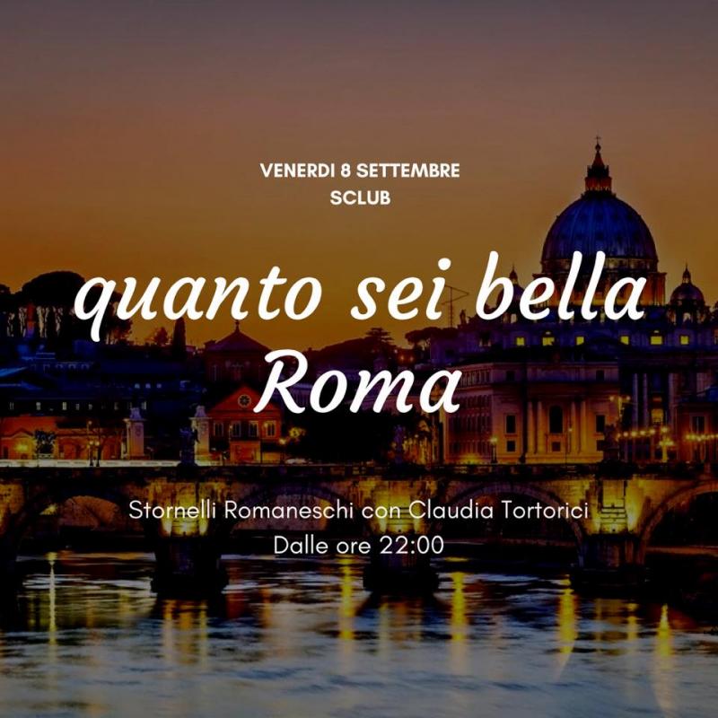 Dalle ore 18:00 il giardino di S Club apre i suoi cancelli per proporre una serata all’insegna della cucina romana con stornelli e racconti interpretati da Claudia Tortorici. Organizzare una serata dedicata a Roma a due passi dalla Capitale potrebbe sembrare bizzarro, ma, in realtà, è proprio per i romani che è stato pensato questo evento! Quando si vive da molto tempo in una città, si finisce con abituarsi e a darla quasi per scontata. S Club – che si trova a Fregene quindi poco distante dall’aeroporto Leonardo da Vinci - vuole far vedere la Città Eterna con l’occhio del turista che vi mette piede per la prima volta e rimane a bocca aperta ammirandone la bellezza e gustandone la cucina.