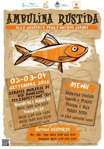 Il mese di Settembre si apre come di consueto all'insegna della gastronomia con la tradizionale 'AMBULINA RUSTIDA', la degustazione del classico pesciolino dell'Adda, fritto e da gustare in un sol boccone.