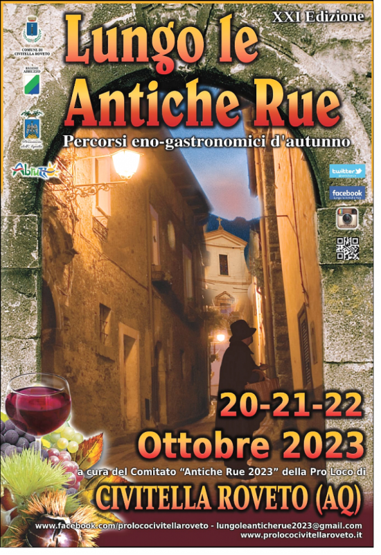 La nuova edizione di Lungo le Antiche Rue a Civitella Roveto (AQ) si svolge il 20, 21, 22 Ottobre 2023.