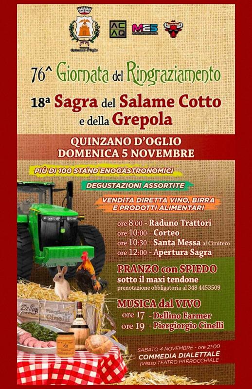 Quinzano d'Oglio 76a Giornata del Ringraziamento e 18a Sagra del Salame Cotto e della Grepola
