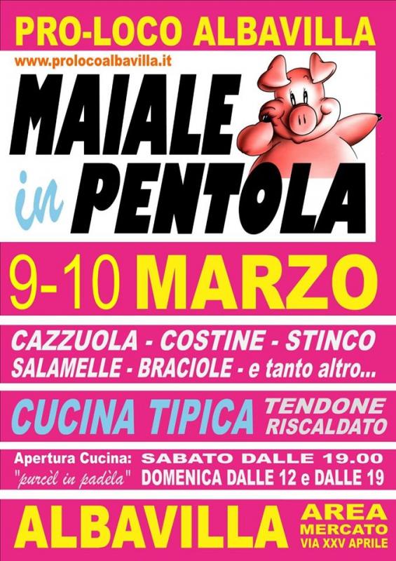 L'evento Maiale in Pentola si svolge quest'anno il 9 e 10 Marzo 2019 presso l'Area Mercato Albavilla (CO).