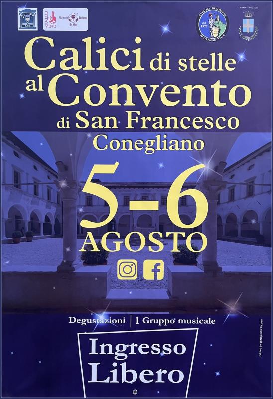 In collaborazione all’Assessorato al Turismo della Città di Conegliano, Calici di Stelle in Castello a Conegliano si svolgerà il 05 e 06 Agosto 2022 nella splendida cornice del Convento di San Francesco di Conegliano.