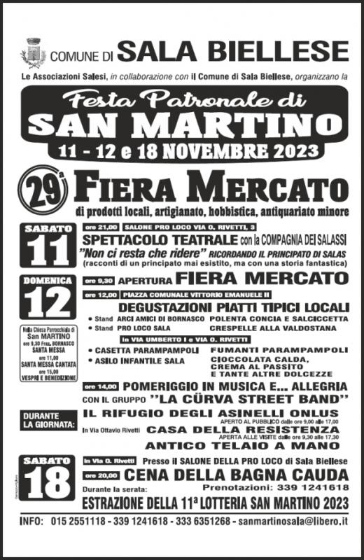 La Festa Patronale di San Martino a Sala Biellese (BI) si svolge nei giorni 11, 12 e 18 Novembre 2023.
