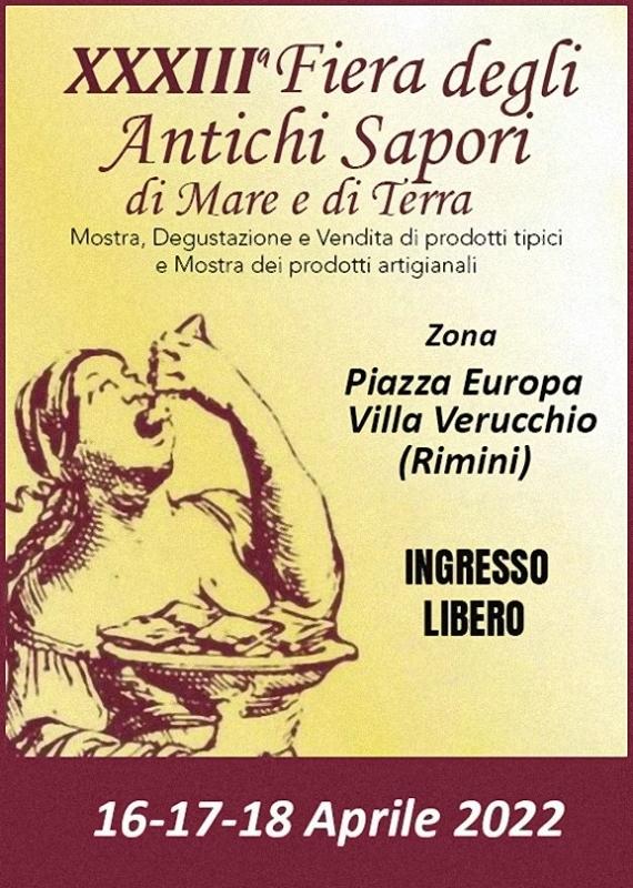 “FESTIVAL DEGLI ANTICHI SAPORI di MARE E di TERRA”, giunto quest’anno alla trentatreesima edizione, che sara realizzata stavolta a Villa Verucchio, sui primi colli riminesi, nella centralissima Piazza Europa, nei giorni 16, 17, e 18 Aprile 2022.