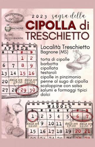 A Treschietto, frazione del Comune di Bagnone in provincia di Massa-Carrara dopo quattro anni torna nei giorni 29, 30 Aprile e 01, 06, 07 Maggio 2023 la Sagra della Cipolla.
