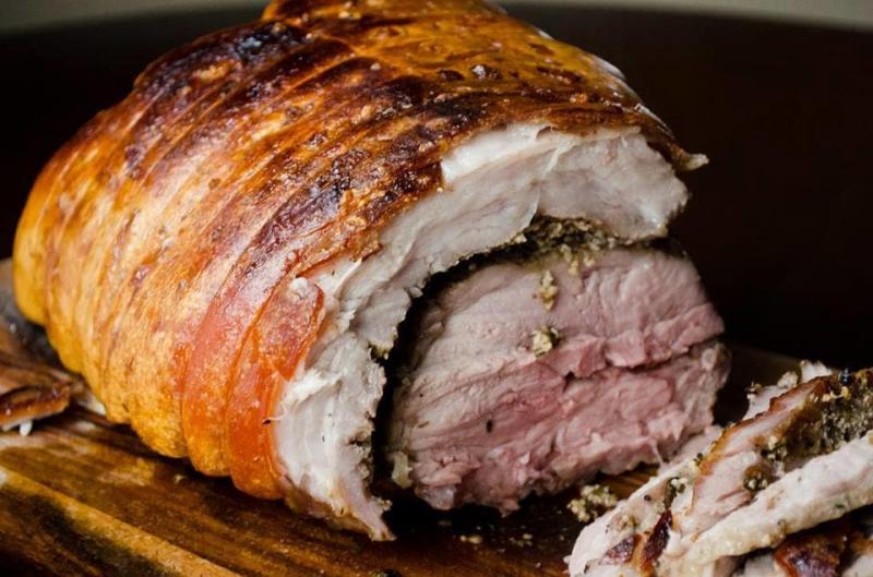 Tanta, ma tanta PORCHETTA d’Ariccia, calda, croccante, fumante e tenera, accompagnata dal vinello dei Castelli Romani.
