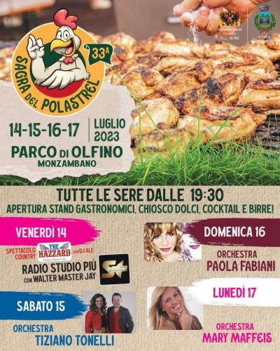La XXXIII edizione Sagra del Polastrel a Olfino di Monzambano si svolge dal 14 al 17 Luglio 2023 .